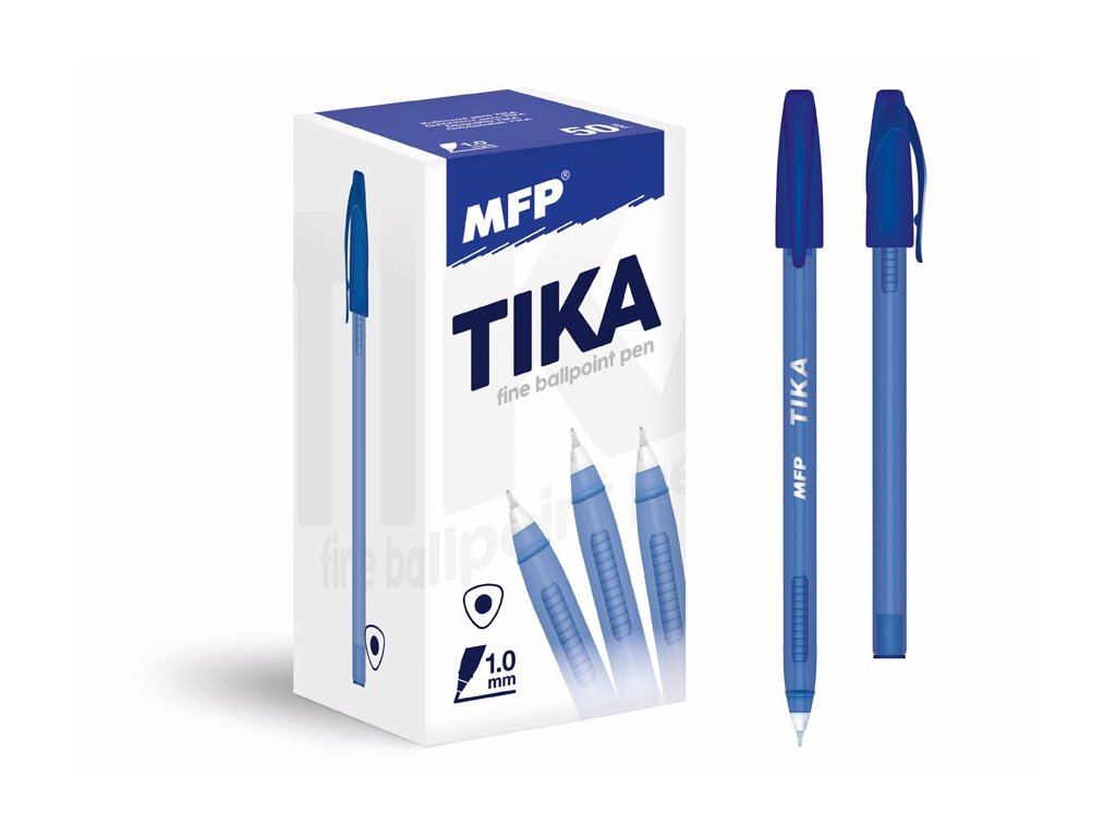Jednorázové kuličkové pero modré s uzávěrem - trojhranné tělo pera. Vhodné do kanceláře, školy i domácnosti. Každé pero je značeno EAN kódem.Hrot: 1,0 mm