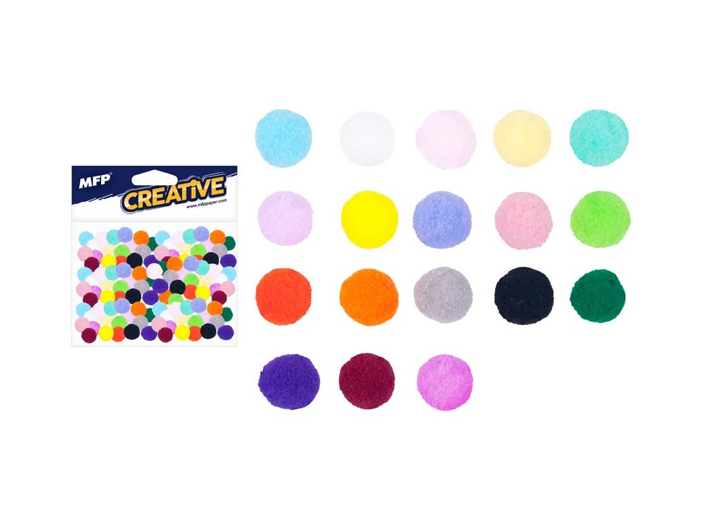 Plyšové kuličky Pompom. Jsou ideální na kreativní tvoření, učení barev nebo počítání. Dají se z nich vyrobit postavičky, zvířátka nebo květinky. Můžete s nimi ozdobit přáníčko, notes ale i oděvy, záleží jen na vaší fantazii.OBSAH BALENÍ: