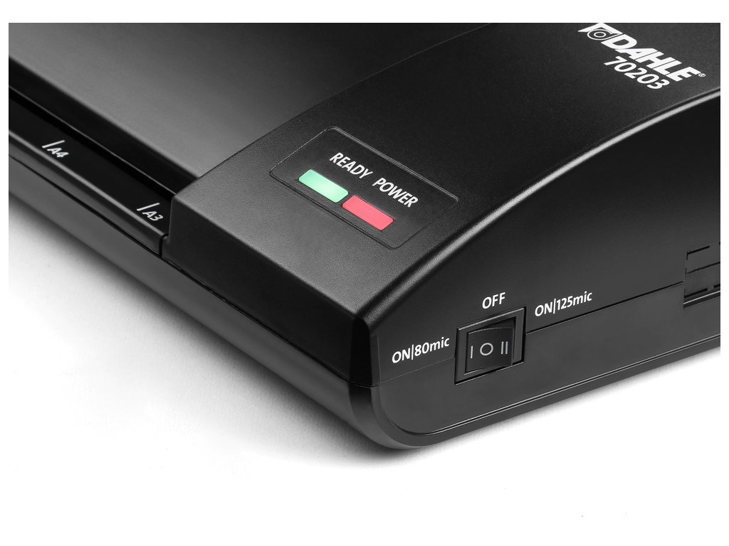 Rychlá laminace pro trvalou ochranu dokumentů před vlhkostí a znečištěním. Moderní zařízení s kontrolními LED pro oznámení zapnutí a připraveno k laminaci. Snadná a bezpečná laminace dokumentů v tiskové kvalitě. Dva nahřívané silikonové válce pro laminaci fólií: 2x80 µm nebo 2 x 125 µm. Uvolňovací páčka pro bezpečné zpětné vysunutí dokumentu. Automatické vypnutí po 30 minutách nečinnosti.trvalá ochrana dokumentů A3, A4, A5