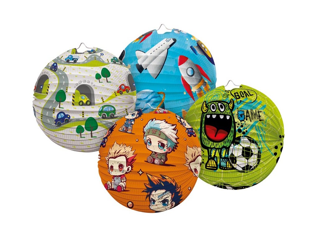 Papírový kulatý lampion barevný s obrázky. Vhodná dekorace na party, lampionový průvod, zahradní slavnost, karneval, oslavu narozenin nebo jen tak na zavěšení do dětského pokojíčku. Vyberte si svůj lampion a udělejte z běžného večera kouzelný.Lampion je z nehořlavého papír a má držák na svíčku nebo žárovku. Lampion je bez hůlky a světýlka. Lampion má poutko na zavěšení.