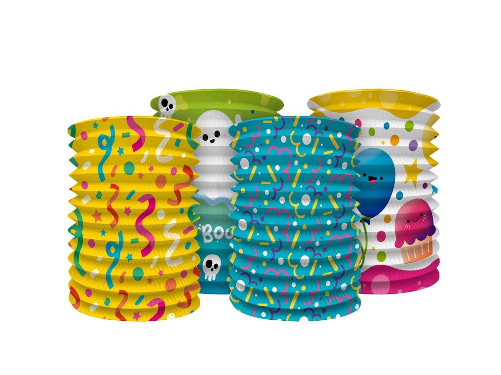 Papírový válcovitý lampion s dětskými halloweenskými motivy. Vhodný jako dekorace na party, lampionový průvod, zahradní slavnost, karneval, oslavu narozenin nebo jen tak na zavěšení do dětského pokojíčku. Vyberte si svůj lampion a udělejte z běžného večera kouzelný.Lampion je z nehořlavého papír a má držák na svíčku nebo žárovku. Lampión je bez hůlky a světýlka. Lampion má poutko na zavěšení.