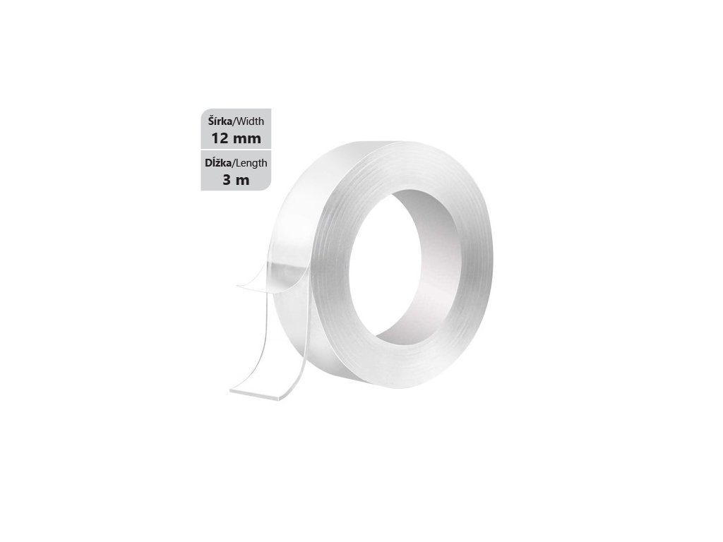 Multifunkční oboustranná Nano průhledná páska. Lepicí páska je odnímatelná a znovu použitelná beze stopy po nalepení. Páska je omyvatelná, má silnou přilnavost a dlouhotrvající živnost. Návod: 1. Odřízněte správnou velikost, kterou potřebujete 2. Odlepte ochrannou fólii pásky 3. Nalepte na místo, kde ji potřebujete 4. Pokud ji chcete odlepit a znovu použít - smyjte zbytky povrchu pásky, po vysušení je možné ji znovu použít. Ideální povrchy pro lepení: plast, kov, dřevo, sklo, cihle, kerDoplňkové parametry