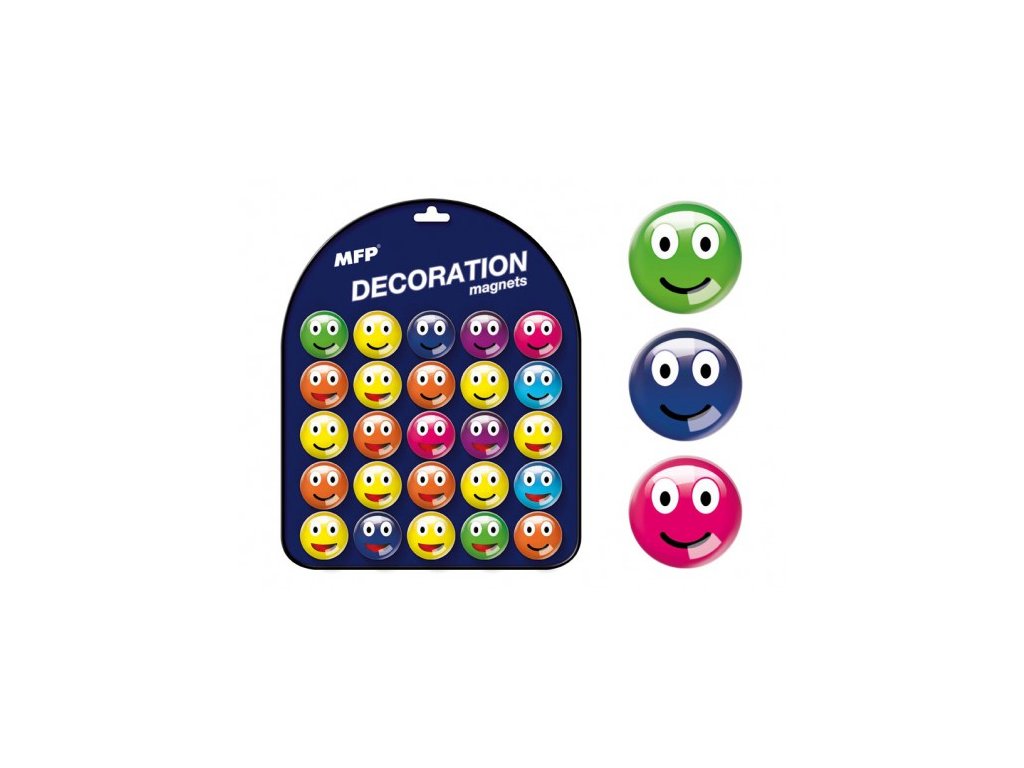 Skleněný, dekorační, kulatý magnet v různých motivech smajlíků, na magnetické tabulce je 25 různých designů.Varianta produktu je dodávána podle aktuální skladové dostupnosti.