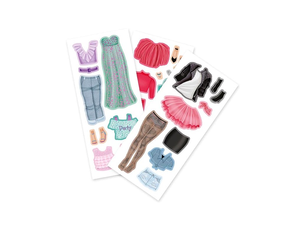 Balení obsahuje oblékací postavičku, 3 archy magnetických částí oblečení, bot a doplňků a dřevěný podstavec.Doplňkové parametry
