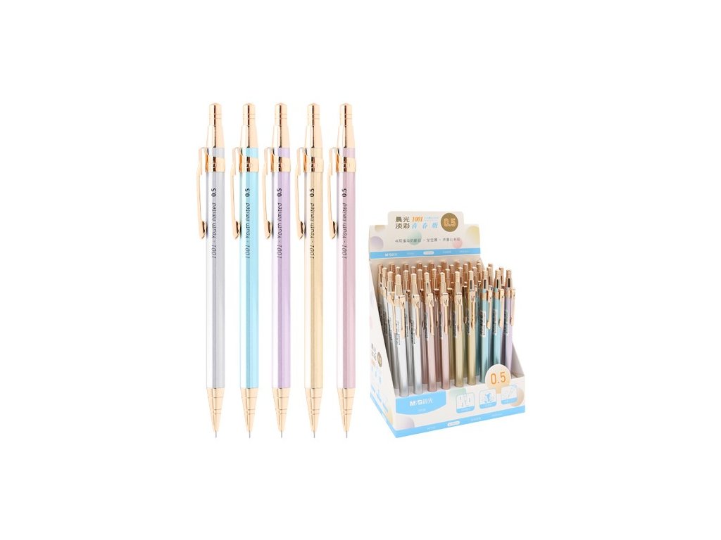 Mikrotužka = pentelka od značky M&G v celokovovém obalu s klipem.Tužka se prodává v pěti jemných až pastelových barvách. Průměr tuhy je 0,5 mm.