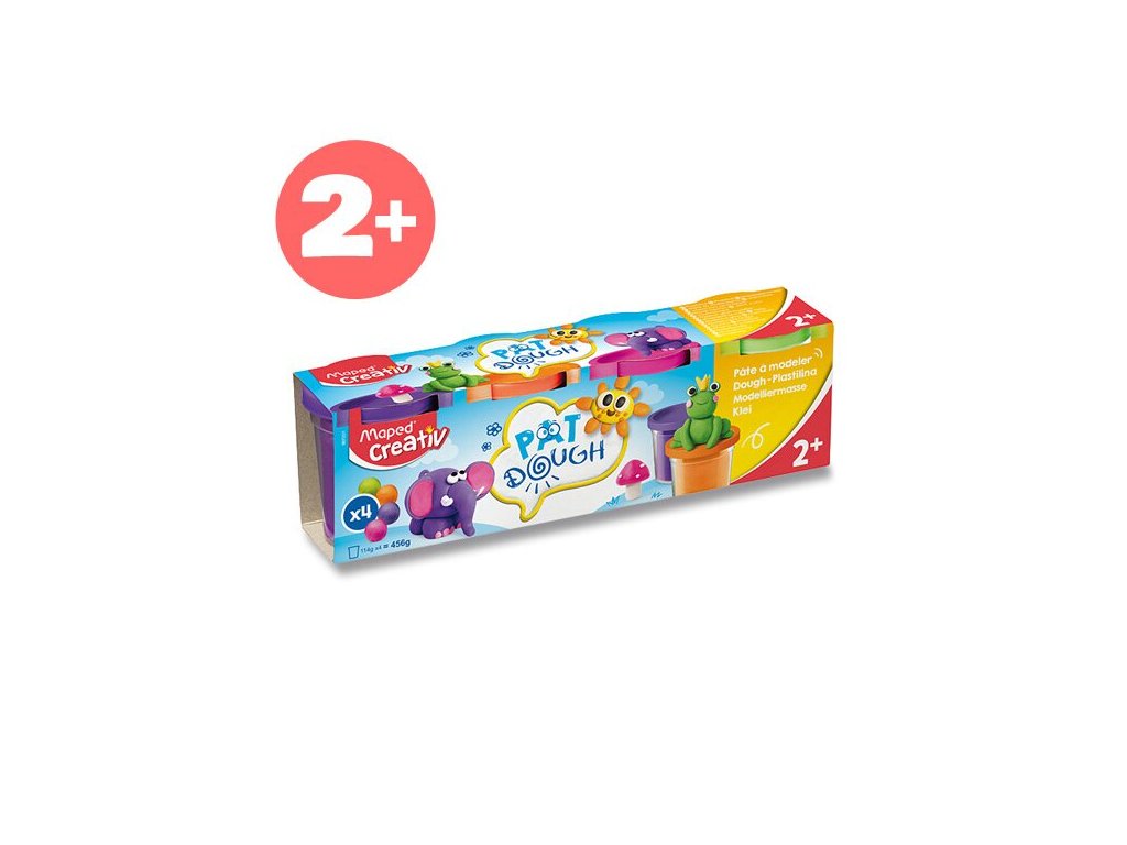 Modelovací hmota Maped Creativ ve čtyřech doplňkových barvách. Hmota je uzavřená v kelímku a tudíž nevysychá, je dlouho dobře tvarovatelná. Vhodná pro malé dětské ruce, napomáhá rozvoji dětské jemné motoriky. 4 x 114 g.Vhodné pro děti od 2 let.