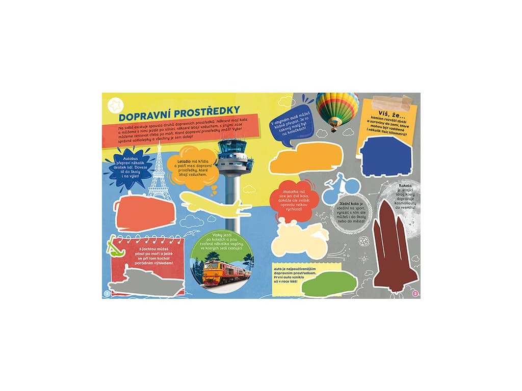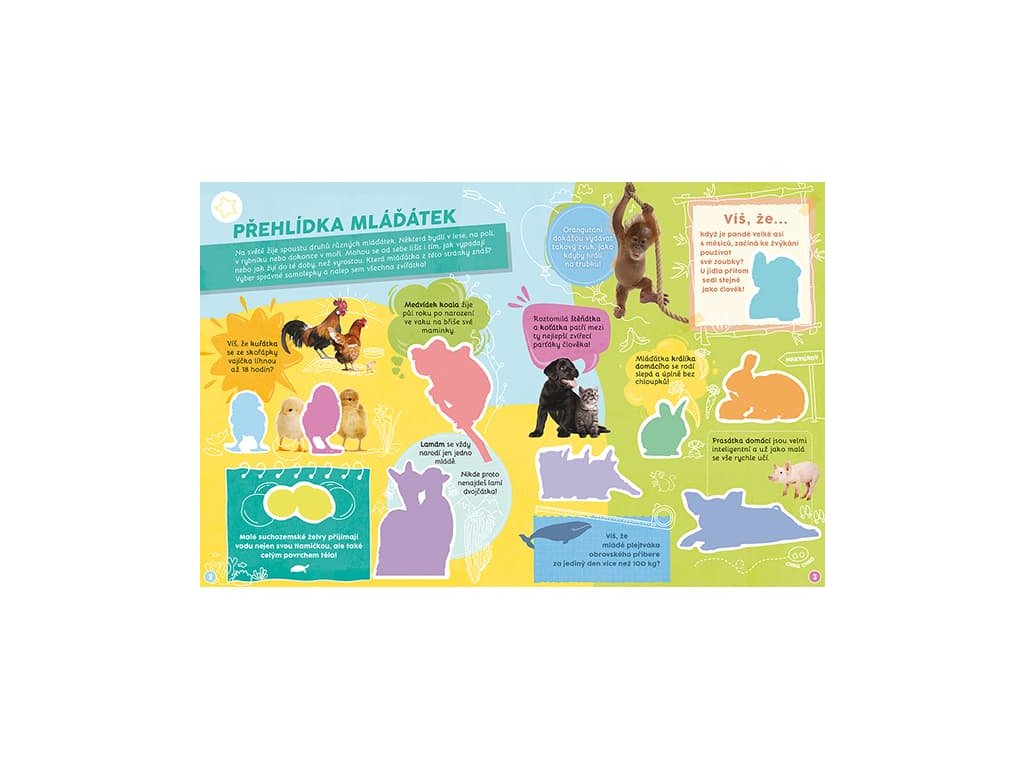 Naučná samolepková knížka obsahuje 16 tematických stran s fotografiemi a více než 100 samolepek pro dolepení. Na konci je navíc zajímavý kvíz, díky kterému si děti otestují své znalosti.Velikost produktu (280 X 216 X 3 mm)