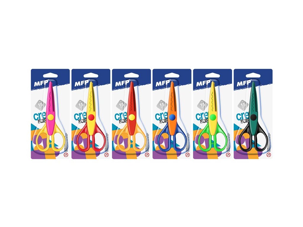 Barevné nůžky s ozdobnými střihy (mix barev a střihů). Nůžky jsou určeny pro děti ke kreativnímu tvoření. Ideální pro tvoření různých kreativních výstřižků.Délka břitu od středu nýtu: 80 mm