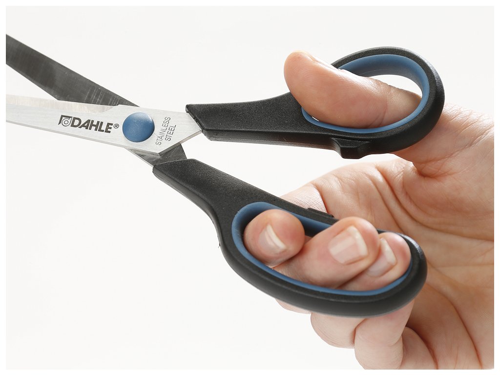 Spolehlivé nůžky s příjemnými měkkými pryžovými rukojeťmi. Nerezová, kalená speciální nůžková ocel s vysokou odolností. Nabroušené čepele pro dlouhodobě ostrý řez.barva: černá s modrými doplňky