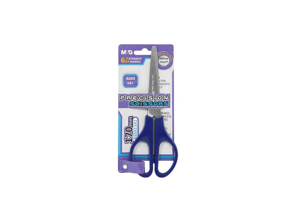Kancelářské nůžky Office Precision M & G s ergonomicky tvarovanou plastovou rukojetí pro pohodlný úchop. Čepel nůžek z kvalitní nerezavějící oceli. Délka čepele 90 mm. Kvalitní, cenově dostupné nůžky.Rozměry 170 mmx73 mm, 6,5´´ Barevnou variantu dodáváme dle skladové zásoby.