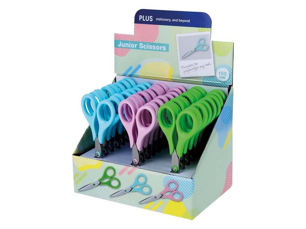 Školní nůžky o celkové délce 15,5 cm.Rukojeť nůžek je vyrobena z odolného plastu a zajišťuje pohodlné uchopení díky ergonomickému tvarování.