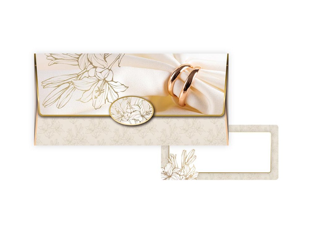 Obálka na peníze svatební prstýnky a květinový dekor 55-111