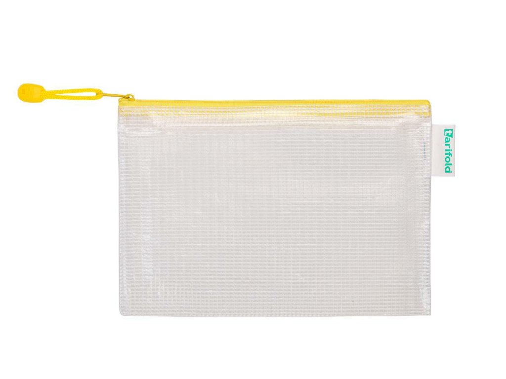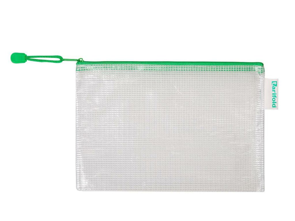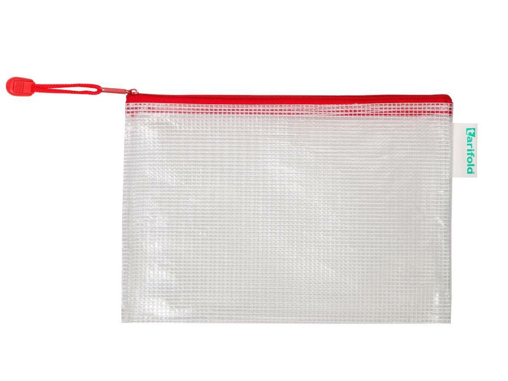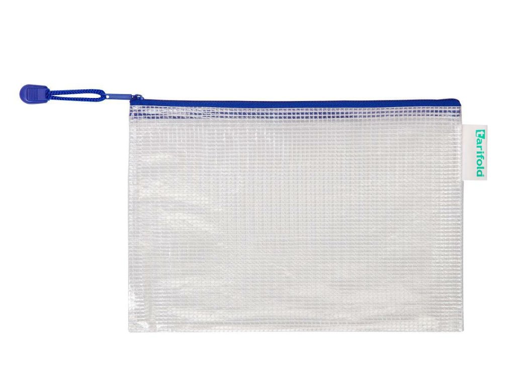 Vysoce odolná poloprůhledná obálka zpevněná síťovinou. Vhodná pro přenos a ochranu drobných předmětů, dokladů, hotovosti apod. Barevný kovový uzávěr zipu s poutkem pro snadnou manipulaci. Boční textilní poutko pro uchycení pera.materiál: PVC 230 µm