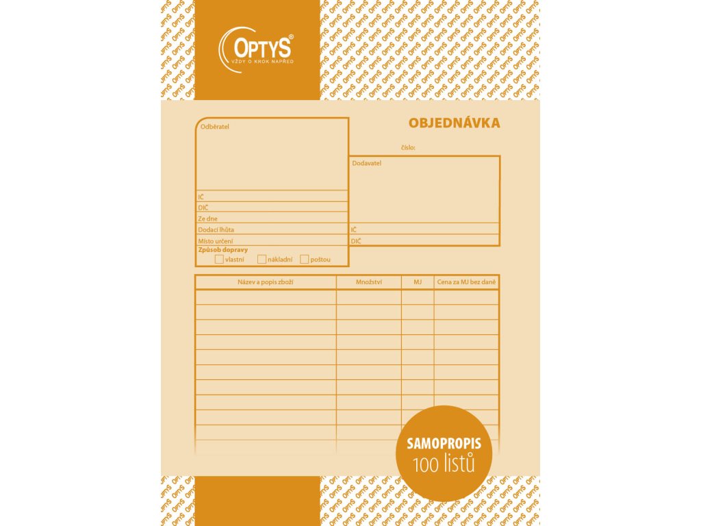 obsahuje 100 listů odtržitelných perforací, se zakládacím děrováním