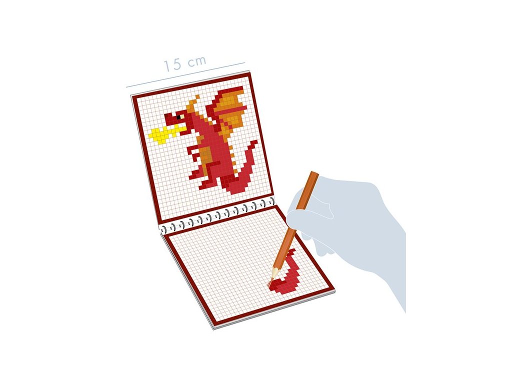 Omalovánky Avenue Mandarine Graffy Pixel s různými motivy. Omalovánky jsou určené k překreslení modelu z předchozí stránky. Omalovánky mají kroužkovou vazbu pro zajištění rovného podkladu a čtverečkový papír usnadňující překreslení. Obsahují 24 listů, 12 motivů po 2 ks. Gramáž 250 g. Lze použít na všechny techniky - pastelky, fixy, akvarel atd.Vhodné pro děti od 5 let.