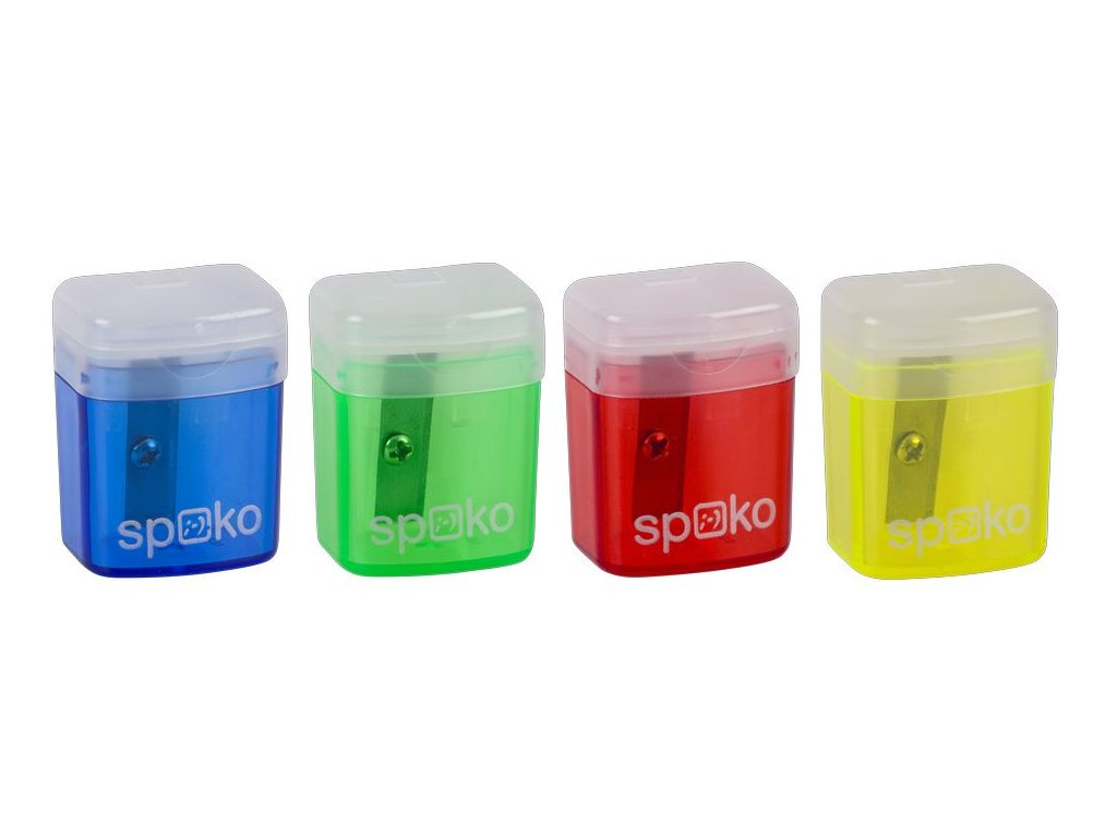 Školní ořezávátko vhodné do každého školního penálu. Transparentní kontejner umožňuje kontrolovat množství odpadu. Praktické víčko zabraňuje vysypání obsahu. Tištěné logo na těle.mix 4 barev: žlutá, červená, zelená, modrá