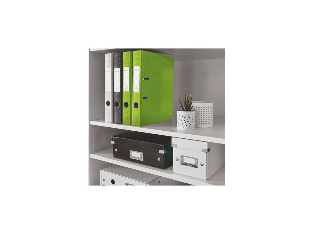 Unikátní patentovaná páková mechanika s otevřením o 180°, která umožňuje o 50 % širší otevření a o 20 % rychlejší práci s pořadačemStylový samolepicí hřbetní štítek