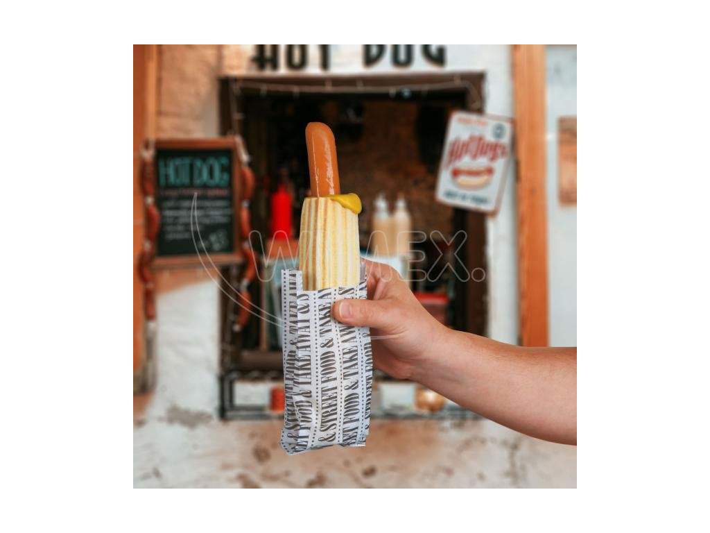 Papírový sáček nepromastitelný Street Food 8 + 4 x 17 cm na párek v rohlíku [300 ks]