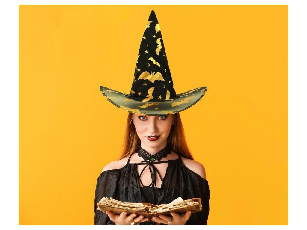 Párty čarodějnický klobouk se zlatým potiskem