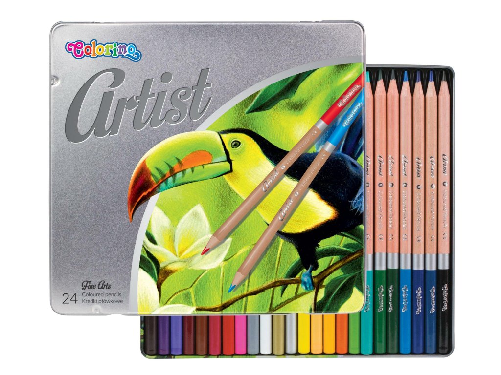 Pastelky dřevěné Artist kulaté kovový box 24 barev