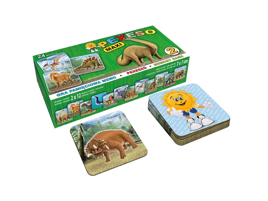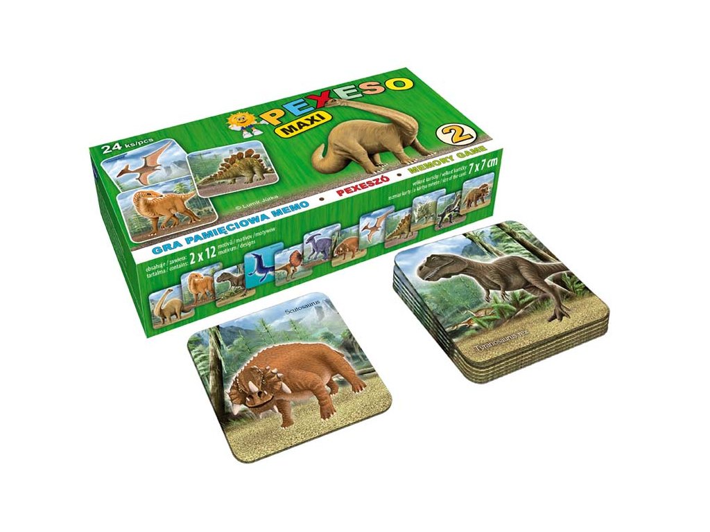 PEXESO je populární dětská stolní hra, která nikdy neomrzí a zapojit se můžou i dospělí. Pexeso - Dinosauři. Vhodné pro chlapce a milovníky pravěku. Věděli jste, že slovo PEXESO vzniklo souslovím slov PEKELNĚ SE SOUSTŘEĎ? Výborná učební pomůcka pro děti a rodiče. Naučte své děti poznávat různé druhy dinosaurů a procvičujte jejich paměť. Tato hra je zabaví na dlouhé hodiny.Pexeso se skládá z 24 vyseklých kartiček pexesa, na kterých jsou vyobrazeny obrázky a názvy dinosaurů . Tloušťka kartonu je 3 mm, aby jej malé děti mohly lépe uchopit a otočit.
