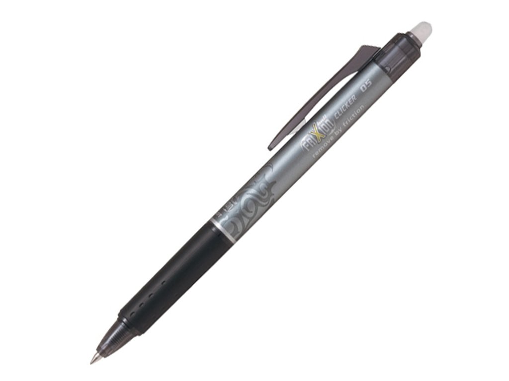 Napiš ... Vygumuj ... A přepiš s rollerem FriXion se stiskacím mechanismem! Vygumujte beze zbytků pomocí tepla, které vzniká třením gumovacího hrotu FriXion o papír, a který nezanechává žádné zbytky. Použijte stejné pero (inkoust) pro psaní a přepsání. Použijte roller FriXion Ball Clicker s patentovaným termosenzitivním inkoustem, se kterým - jako již tradičně - přináší Pilot revoluci v psaní! Ve funky stylu s designem tetování je dodáván v osmi barvách. Nepoužívejte k podepisování oficiálních dokumentů, u právních dokumentů, při zkouškách nebo při práci s jinými dokumenty, jejichž obsah musí mít trvalý charakter.SPECIFIKACE