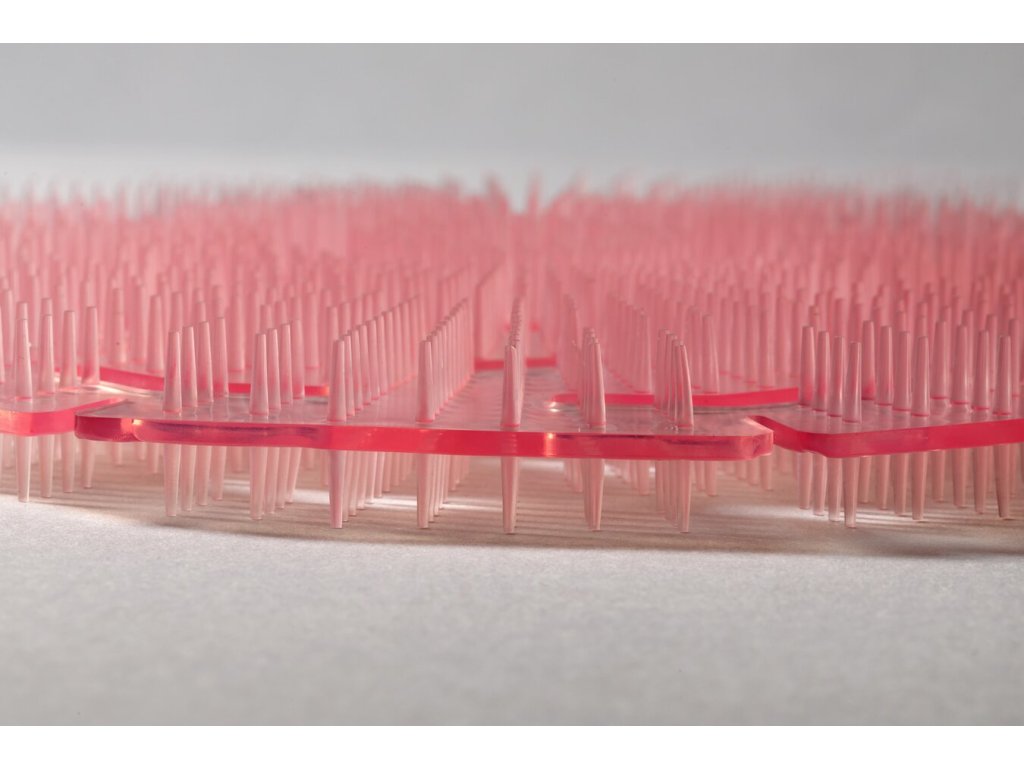 - vyššími bodlinkami na obou stranách, které z jedné strany zabraňují rozstřiku tekutin a z druhé strany umožňují snad odtok tekutin, navíc bodlinky zvětšují vonnou plochu