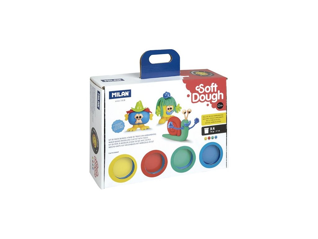 Plastelína MILAN Soft Dough sada 4 barev + nástroje "Funny faces"
