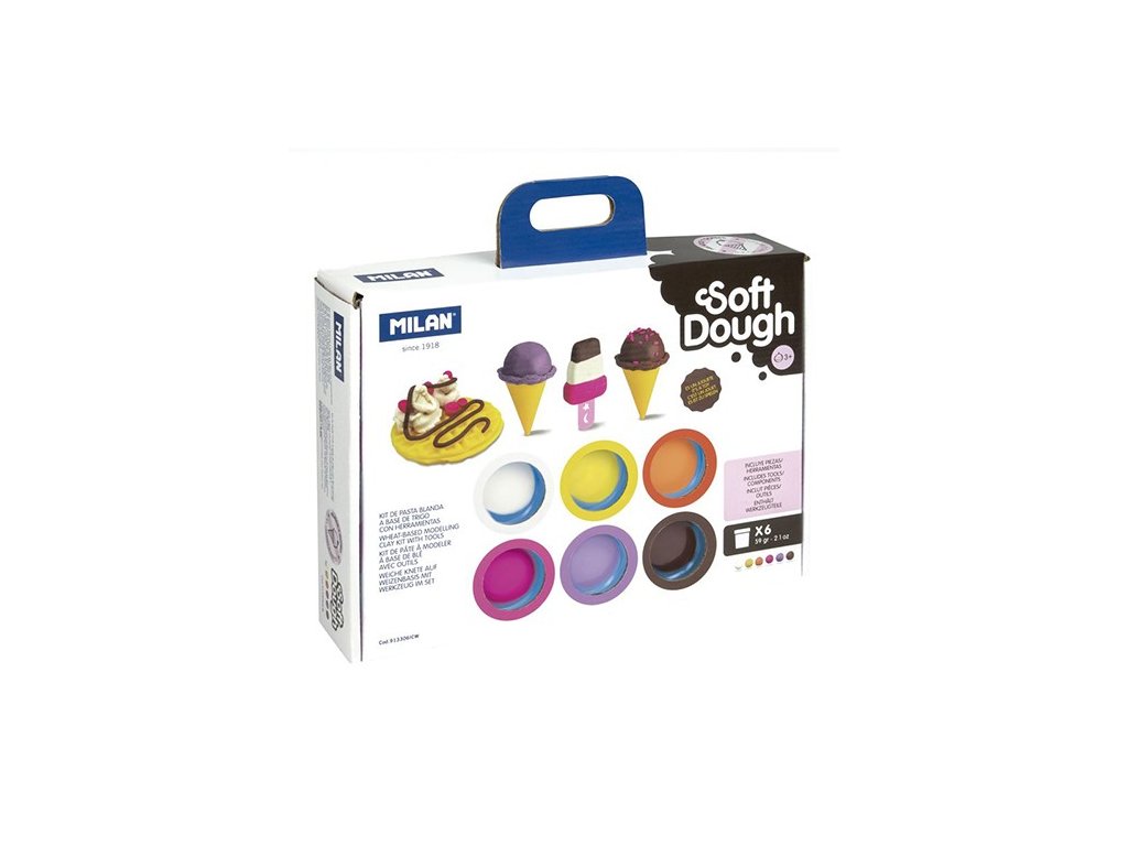 Plastelína MILAN Soft Dough sada 6 barev + nástroje "Ice creams & Waffles"