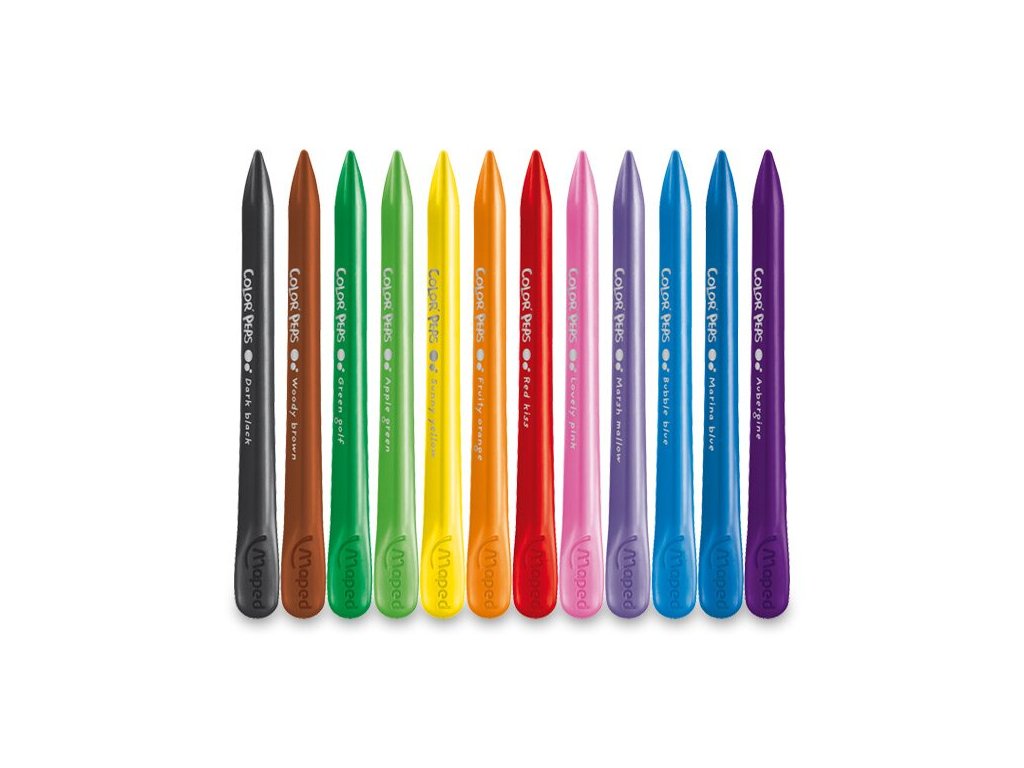 Plastové pastely s trojhranným tělem. Jeden konec se špičkou pro přesné kreslení, druhý plochý pro vybarvování větších ploch. Nezanechávají stopy na rukou a jednoduše se ořezávají. Vydrží 3x déle než standardní voskovky.Průměr pastelu 8 mm, resp. 11 mm