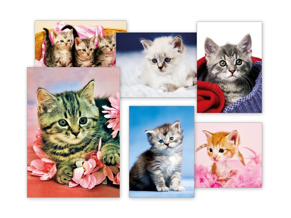 Tyto roztomilé kočičky určitě potěší každého. Pohlednice jsou bez textu na zadní straně.Text: bez textu