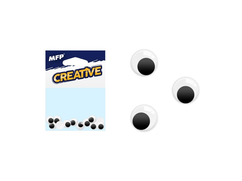 Pohyblivé nalepovací oči o průměru 1 cm. Oči mají pohyblivou přední část, slouží k výtvarným účelům (dotvoření postav lidí, zvířat).BALENÍ OBSAHUJE: