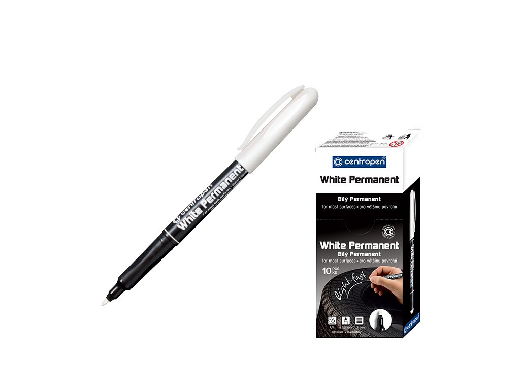- bílý inkoust na vodní bázi píše na povrch většiny materiálů