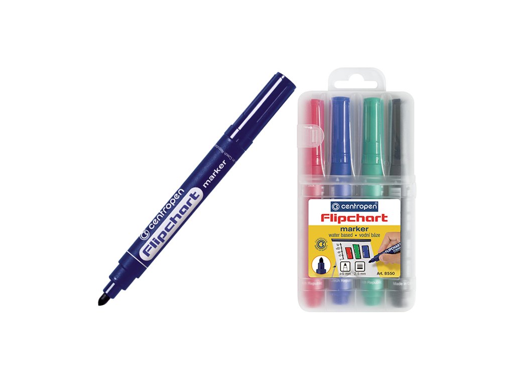 - sada značkovačů určených na psaní na papír, zvláště vhodné pro papírové listové tabule - FLIPCHART- na vodní bázi, nepropíjí papír