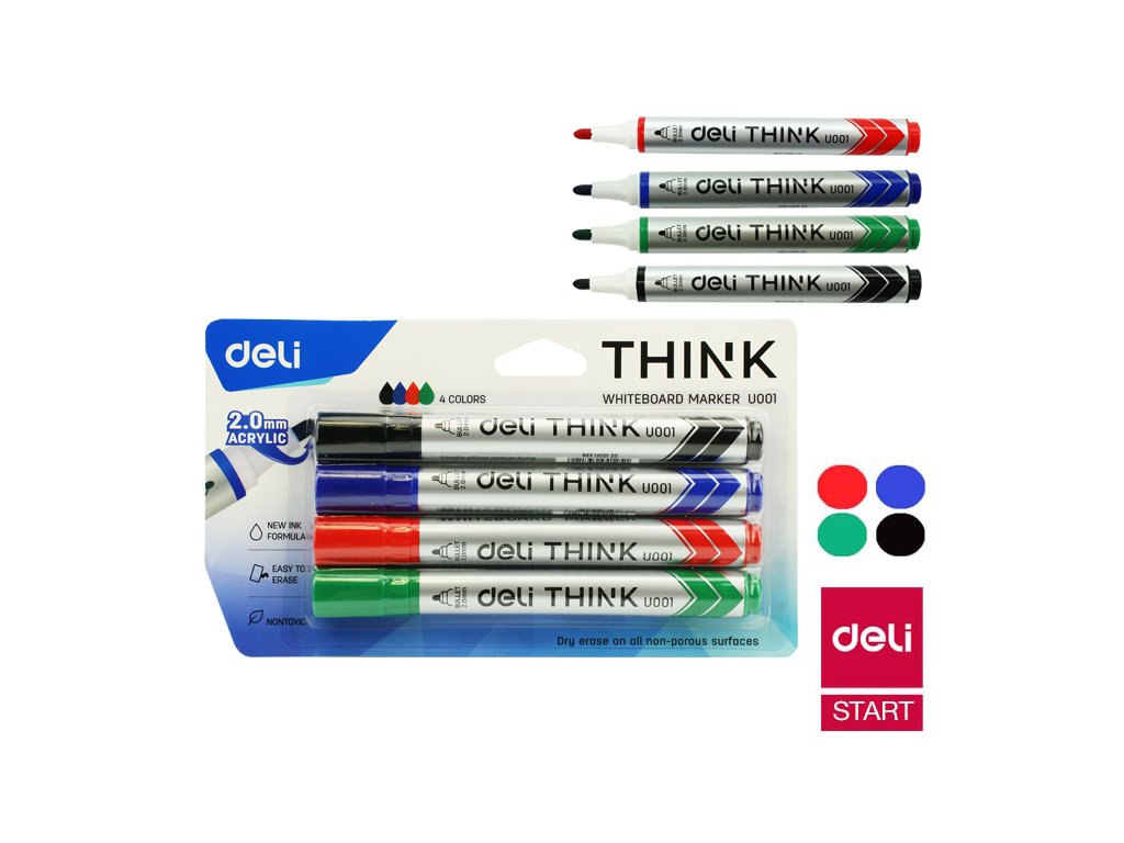 Popisovač DELI EU00101 kulatý stíratelný (8559) sada 4 barev