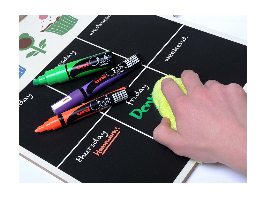 Víceúčelový křídový popisovač s bezprašným inkoustem, který jde snadno smazat vlhkým hadříkem, v sobě spojuje jednoduchost a praktičnost. Díky odolnosti vůči dešti a slunečnímu svitu je ideální na venkovní použití, na výlohy, tabule ale i břidlicové povrchy. Najde si své místo jak v gastro průmyslu, obchodech, domácnostech tak i v hobby pro tvorbu dočasných dekorací na oknech, zrcadlech nebo třeba jmenovkách.na hladké povrchy