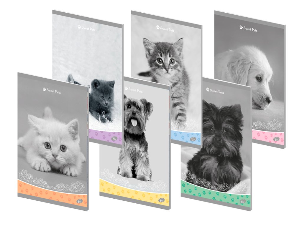 Školní sešit určený malým i velkým školákům. Pro lepší organizaci lze doplnit všechny potřebné údaje ke školnímu předmětu na první stránce v sešitu. Titulní stránka tak zůstává krásně čistá a nenarušena informacemi s popisem. Kvalitní vazba je odolná vůči běžnému opotřebení a prodlužuje tak životnost sešitu.Fotografie šesti roztomilých mláďat domácích mazlíčků.