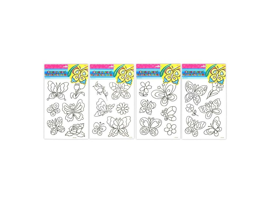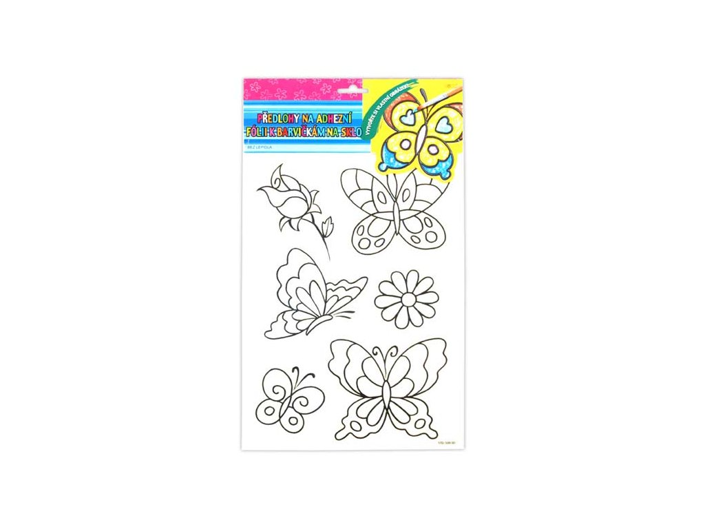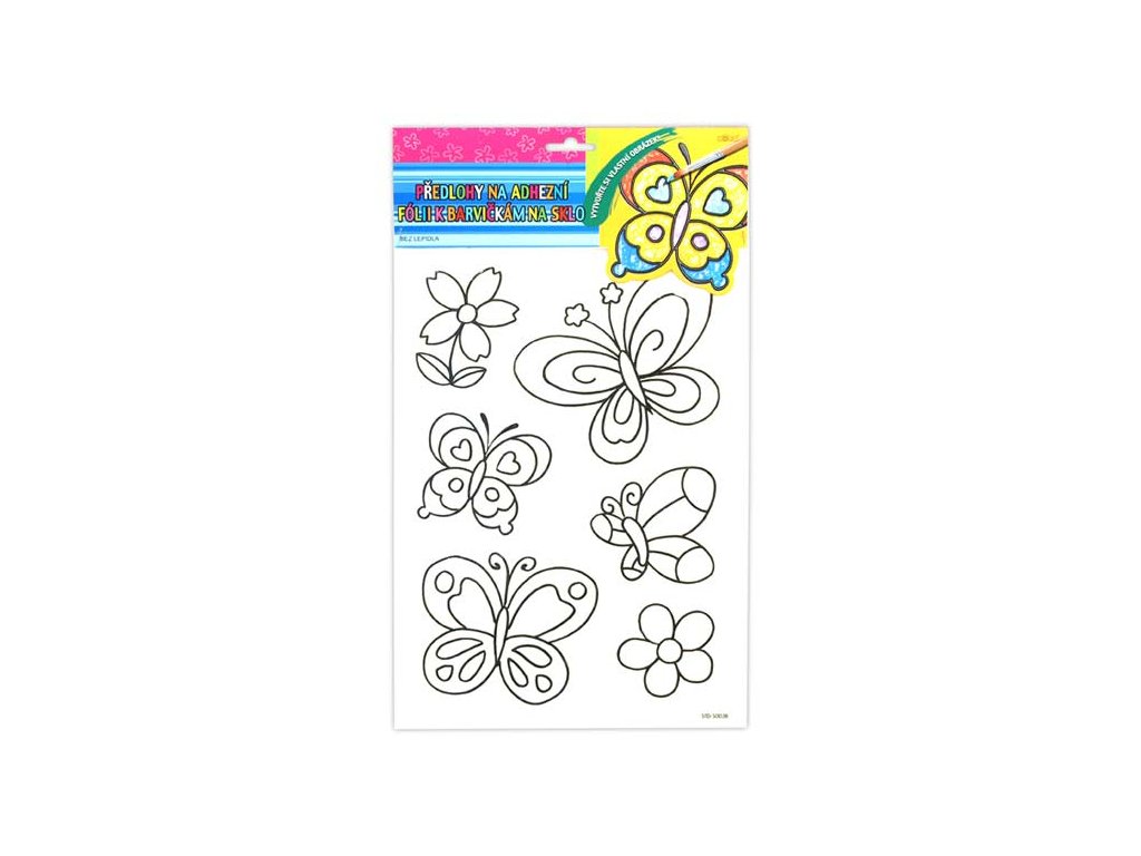 Předloha k barvičkám na sklo na adhezní fólii - Udělejte si pohodové odpoledne s dětmi, překreslete si obrázek pomocí těchto šablon, který si pak můžete umístit na Vaše okno.Provedení: motýlci