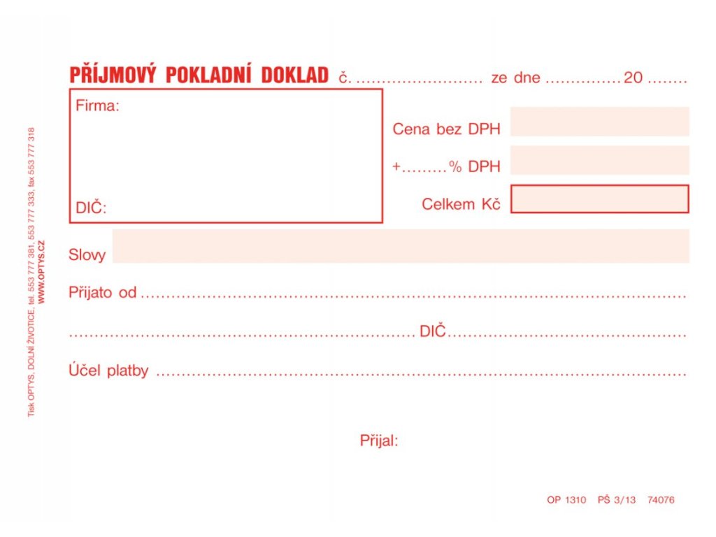 Příjmový doklad A6 jednoduchý 50 listů