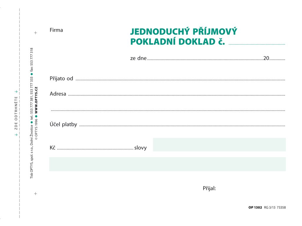 obsahuje 100 listů odtržitelných perforací, se zakládacím děrováním