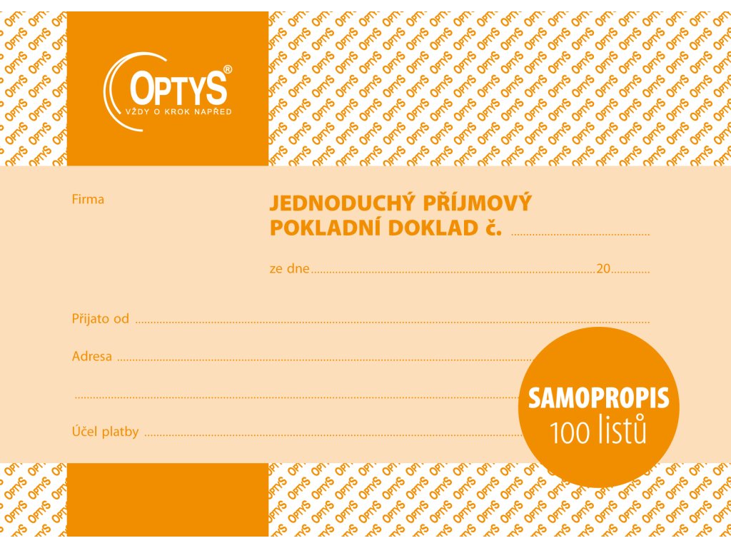 Příjmový doklad A6 jednoduchý samopropisovací 100 listů