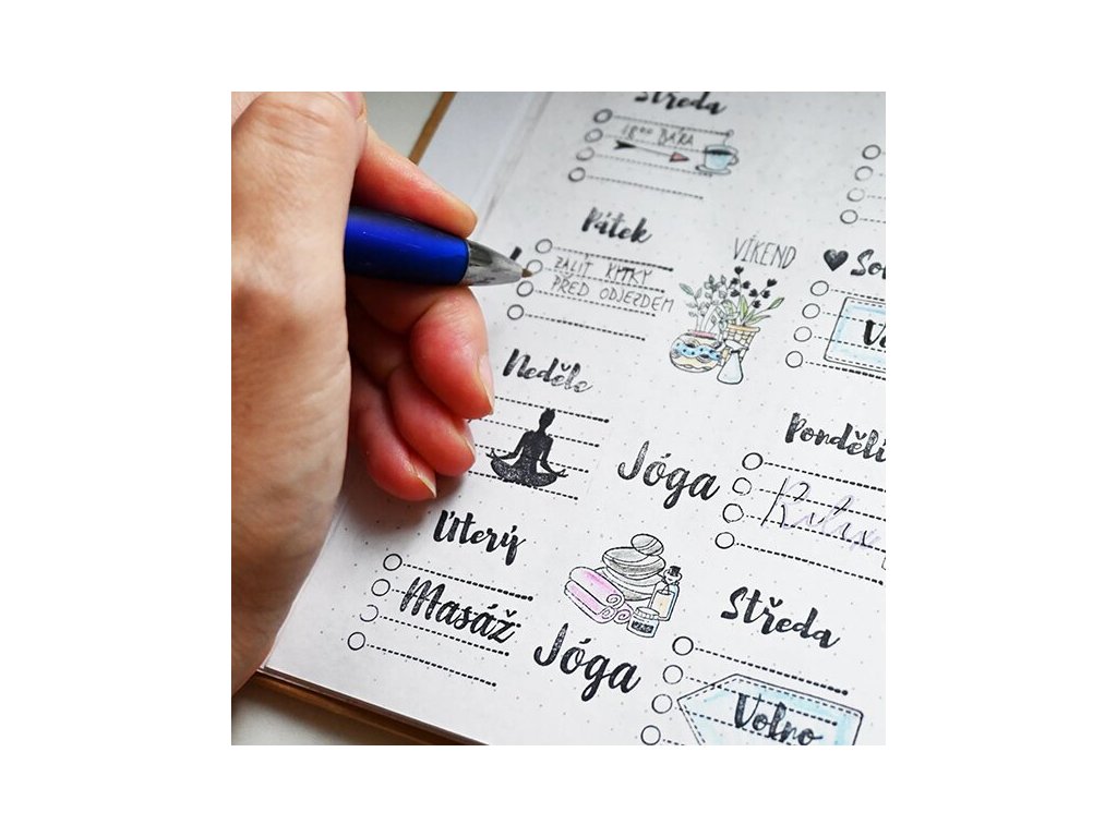 Sada nápaditých diářových razítek Stampo Bullet obsahuje 36 motivů se symboly relaxace. Oživte váš diář nebo deník. Jednotlivé motivy se dají vybarvovat a využít i na přáníčka nebo originální zabalení dárku. Celkový rozměr plata s razítky je 19,5 x 13,5 cm.TIP: K razítkům využijete i razítkovací polštářky.