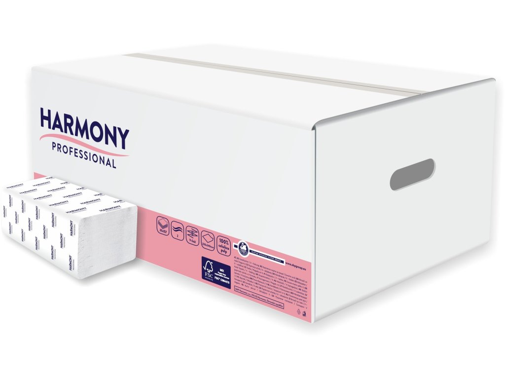 Dvouvrstvé papírové ručníky ZZ HARMONY Professional jsou nedílnou součástí hygieny..Důležitým kritériem pro výběr papírový ručníků je ideální kombinace vlastností, kterými jsou hospodárnost, savost, měkkost, pevnost a kompaktnost, perforace a snadné oddělování útržků v zásobníku.