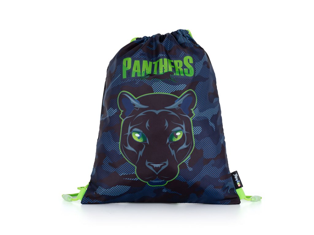 Sáček na přezůvky. Uzavírání stažením šňůrek, možnost nosit i na zádech nebo připevnit ke školnímu batohu. Materiál 100% polyester.