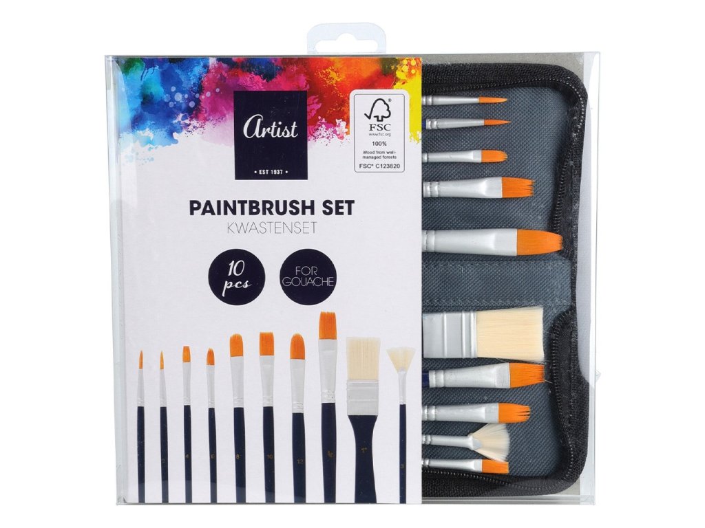 Sada štětců pro kvašové a vodové barvy (10 ks) v pouzdře