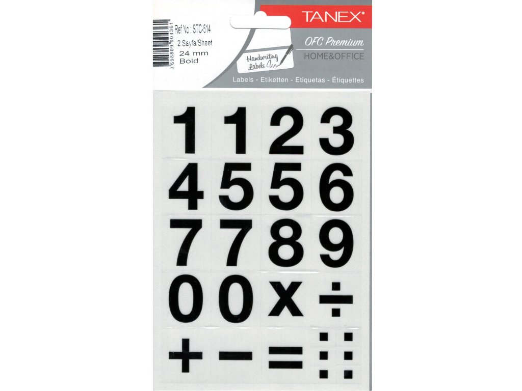 Samolepící etikety čísla 24 mm STC-514 40 ks. Etikety jsou baleny po 2 aršících v sáčku, Uvedená cena je za 1 balení.