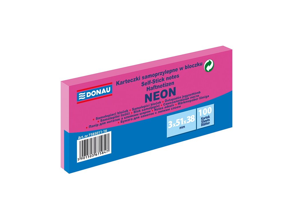 Samolepicí bloček 51 x 38 mm 3 x 100 listů neonově