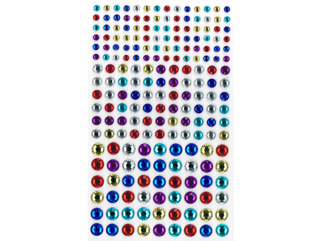 Nalepovací kamínky - plastové, mix bárev, velikost 4, 6, 8 mm. Provedení: 204 ksDoplňkové parametry