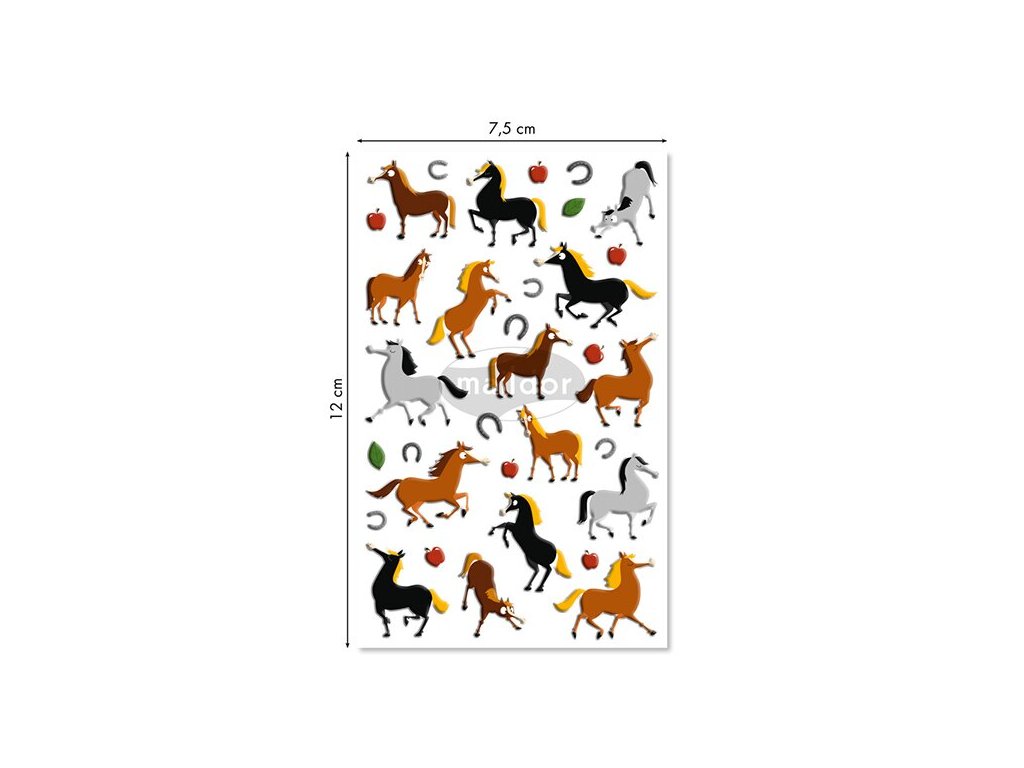 Samolepky Maildor 3D Cooky s motivy koní a s efektem 3D. Balení obsahuje 1 arch s 33 samolepkami.Rozměr balení 7,5 x 12 cm.