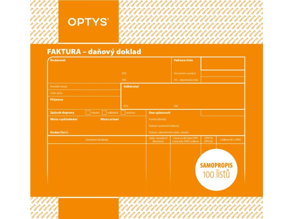 Samopropisovací faktura 21 x 20 cm 100 listů